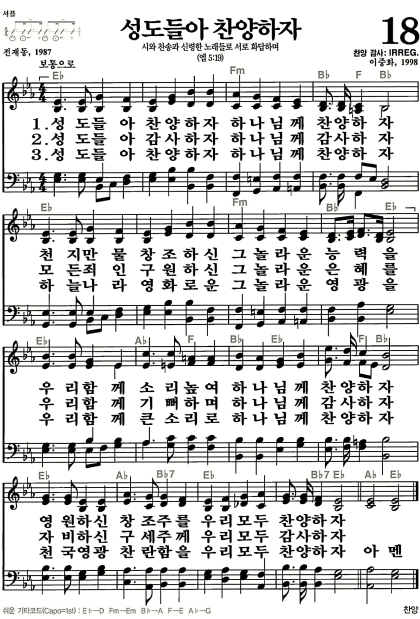 새찬송가 18장 악보, 성도들아 찬양하자(고화질)