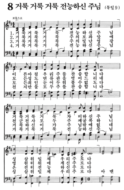 새찬송가 8장 악보, 거룩 거룩 거룩 전능하신 주님(고화질)