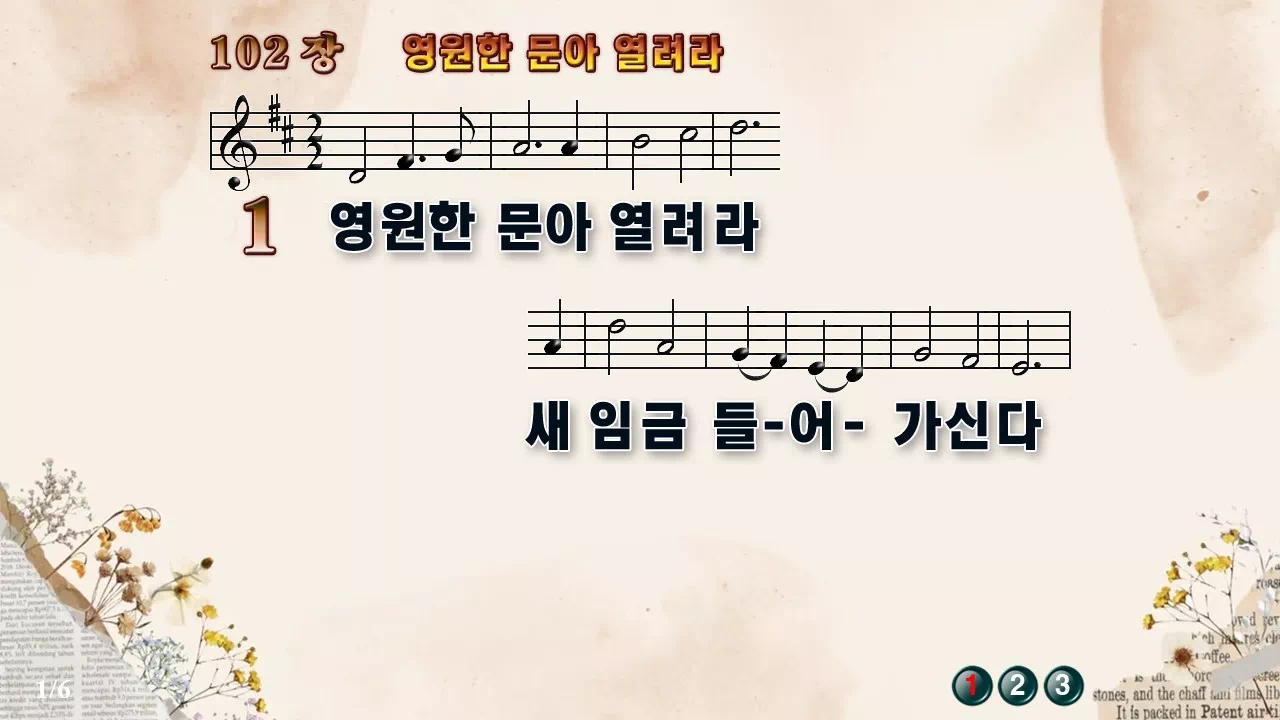 새찬송가 PPT: 102장 영원한 문아 열려라(16:9/가사/PPT악보/다운로드/배경O)