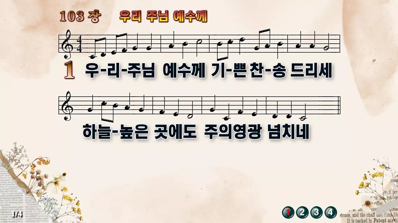 새찬송가 '103장 우리 주님 예수께'의 16:9 와이드버전으로 편집된 새찬송가 PPT악보입니다.