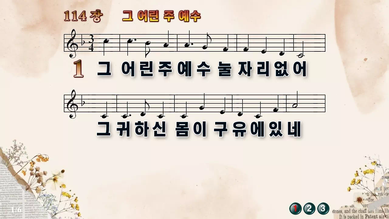 새찬송가 '114장 그 어린 주 예수'의 16:9 와이드버전으로 편집된 새찬송가 PPT악보입니다.