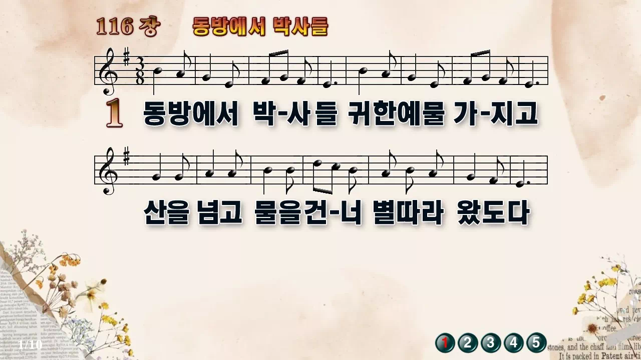 새찬송가 '116장 동방에서 박사들'의 16:9 와이드버전으로 편집된 새찬송가 PPT악보입니다.