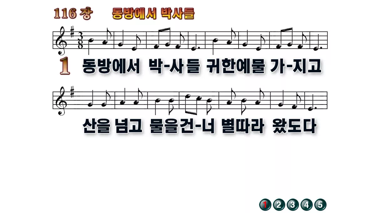 새찬송가 '116장 동방에서 박사들'16:9 와이드버전으로 편집된 배경 없는 새찬송가 PPT악보입니다.