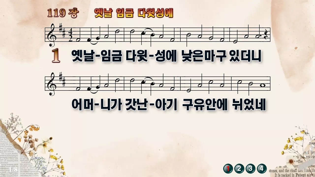 새찬송가 PPT: 119장 옛날 임금 다윗성에(16:9/가사/PPT악보/다운로드/배경O)
