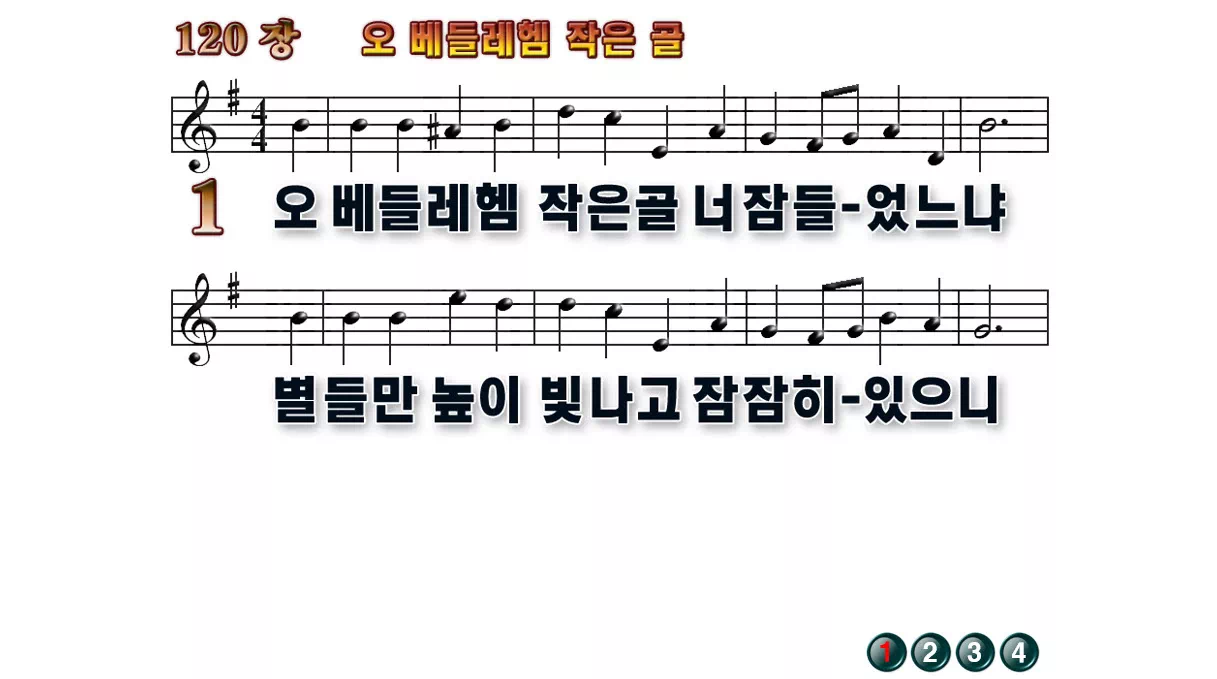 새찬송가 '120장 오 베들레헴 작은 골'16:9 와이드버전으로 편집된 배경 없는 새찬송가 PPT악보입니다.