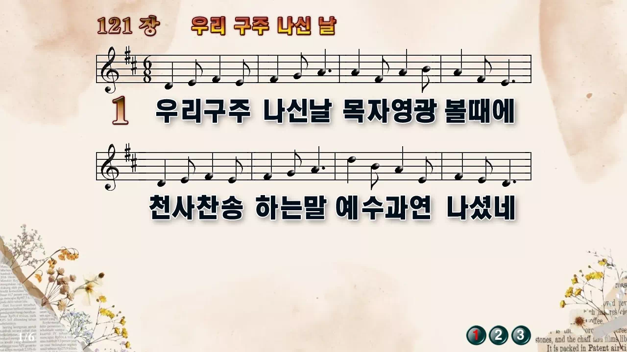 새찬송가 PPT: 121장 우리 구주 나신 날(16:9/가사/PPT악보/다운로드/배경O)