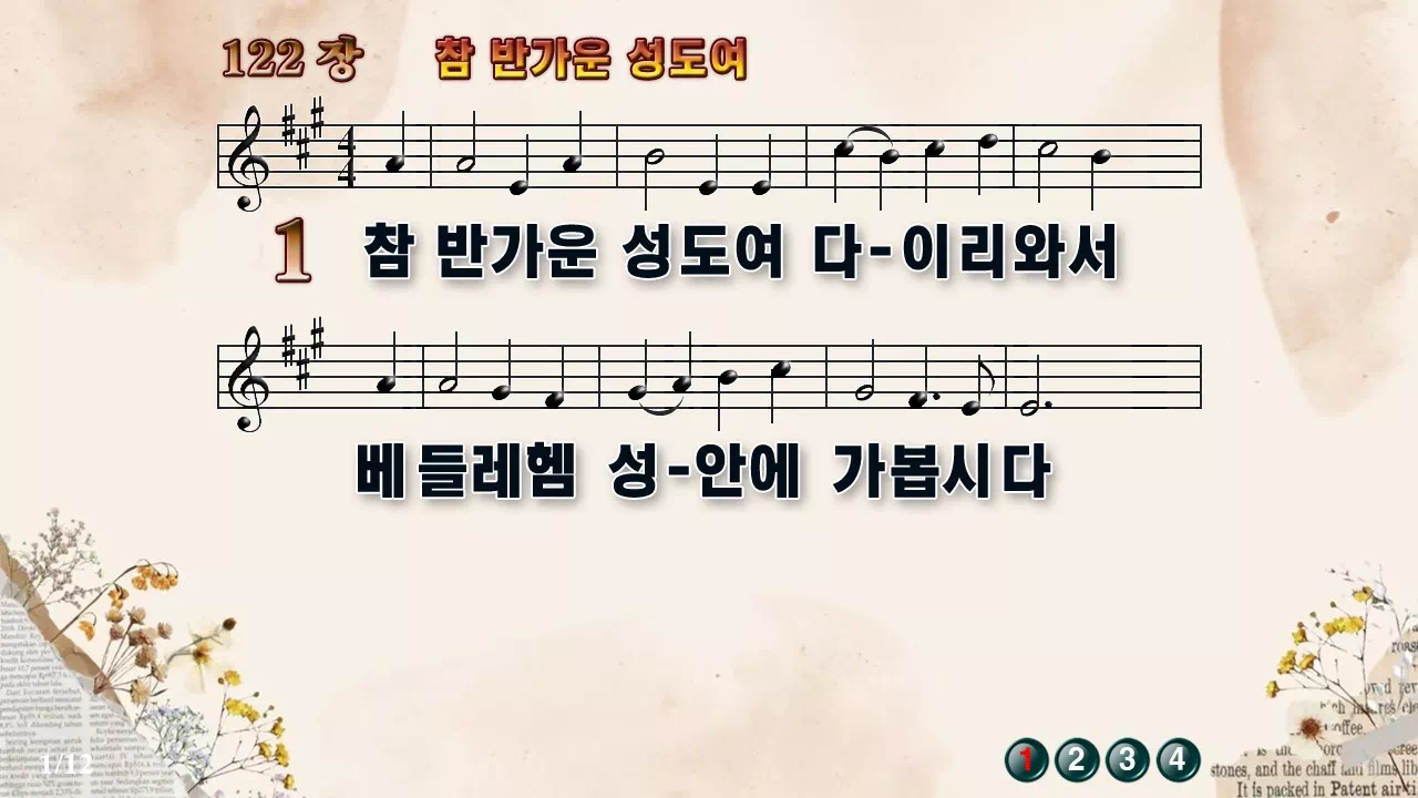 새찬송가 '122장 참 반가운 성도여'의 16:9 와이드버전으로 편집된 새찬송가 PPT악보입니다.