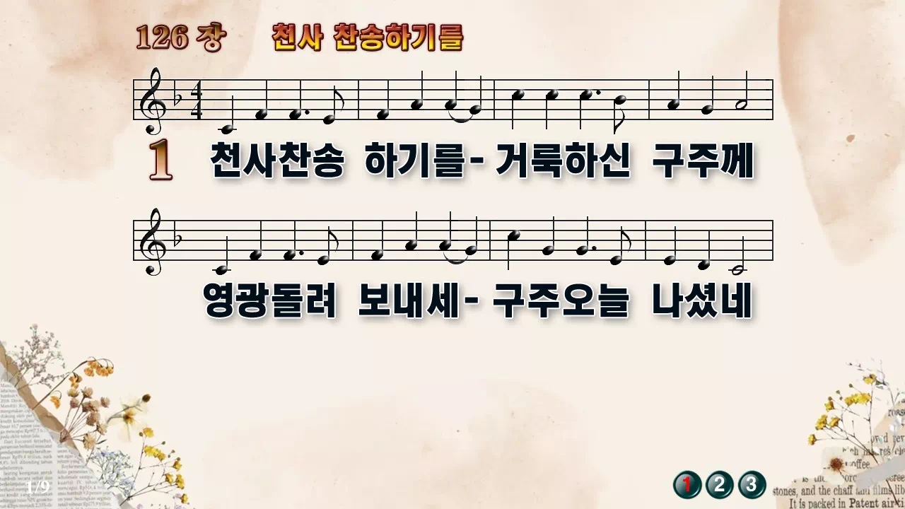 새찬송가 '126장 천사 찬송하기를'의 16:9 와이드버전으로 편집된 새찬송가 PPT악보입니다.