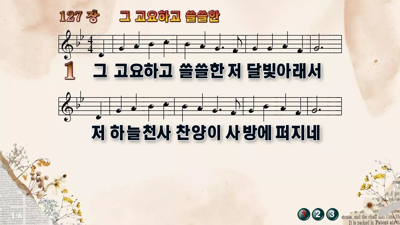 새찬송가 '127장 그 고요하고 쓸쓸한'의 16:9 와이드버전으로 편집된 새찬송가 PPT악보입니다.