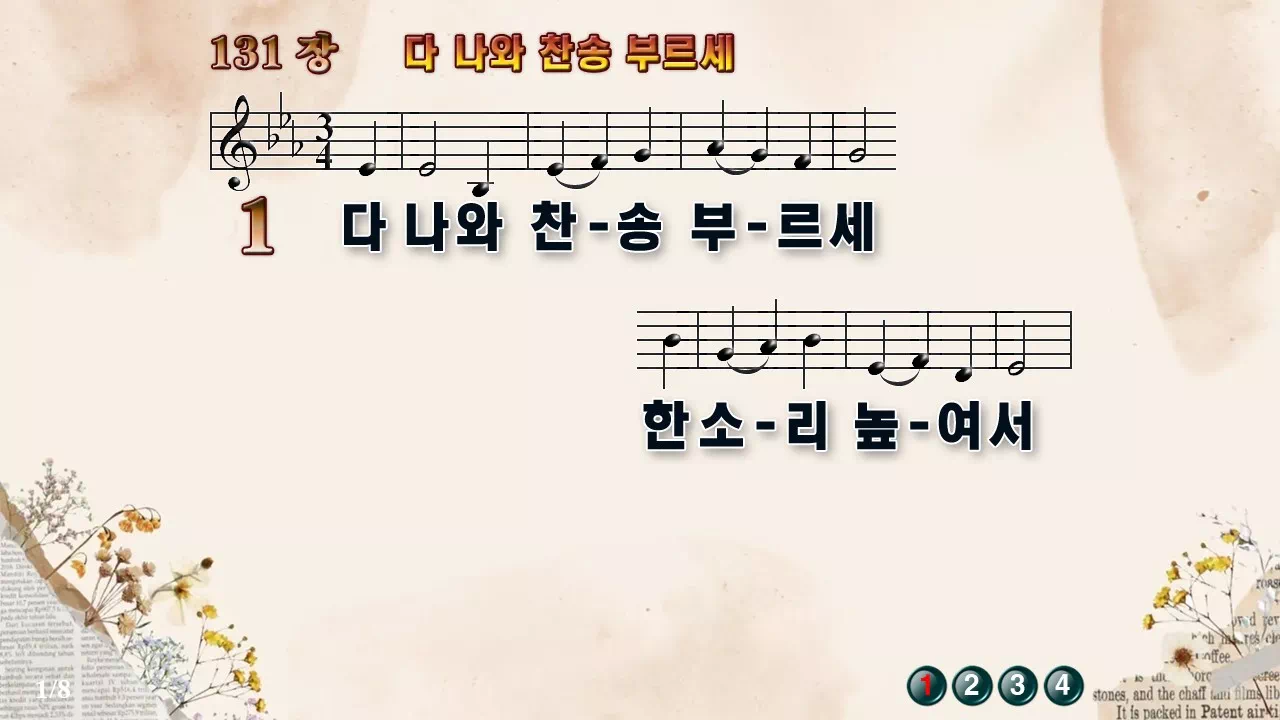새찬송가 '131장 다 나와 찬송 부르세'의 16:9 와이드버전으로 편집된 새찬송가 PPT악보입니다.