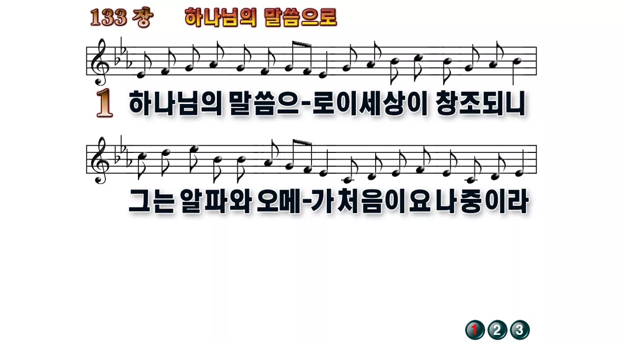 새찬송가 '133장 하나님의 말씀으로'의 16:9 와이드버전으로 편집된 배경 없는 새찬송가 PPT악보입니다.