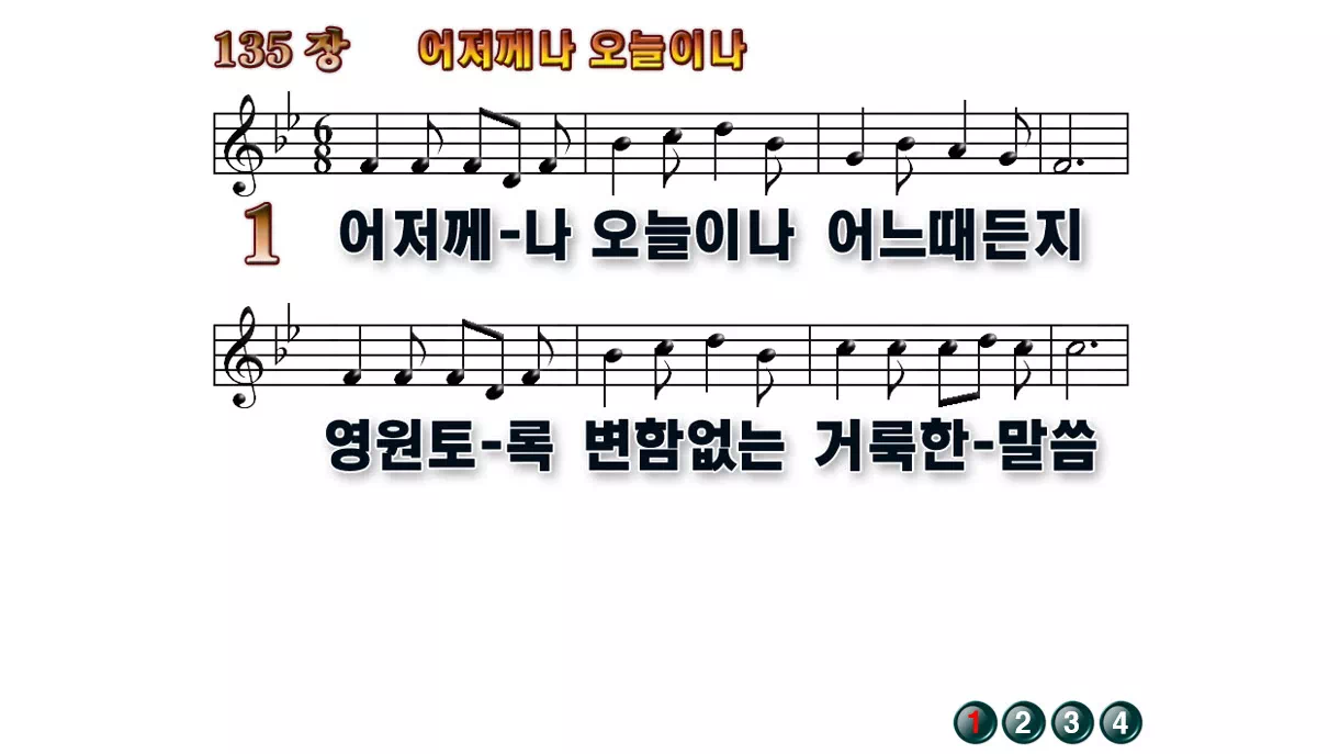 새찬송가 '135장 어저께나 오늘이나'의 16:9 와이드버전으로 편집된 배경 없는 새찬송가 PPT악보입니다.