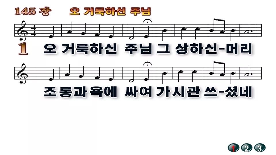 새찬송가 '145장 오 거룩하신 주님'16:9 와이드버전으로 편집된 배경 없는 새찬송가 PPT악보입니다.