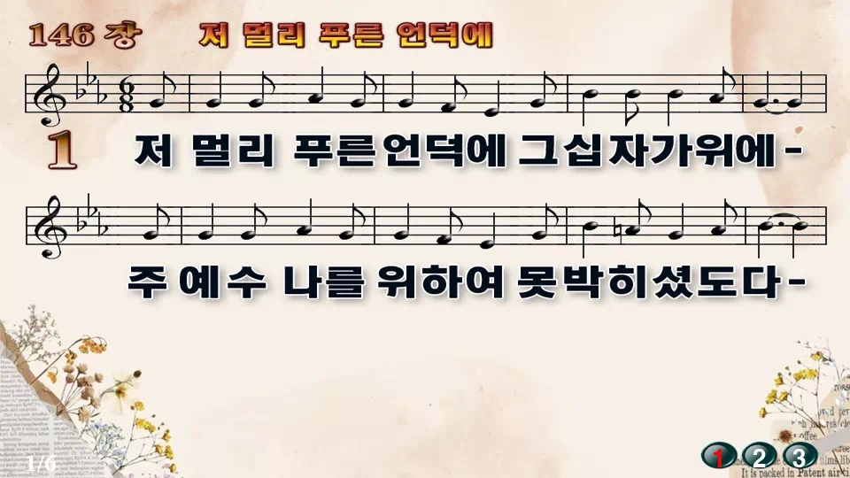 새찬송가 '146장 저 멀리 푸른 언덕에'의 16:9 와이드버전으로 편집된 새찬송가 PPT악보입니다.