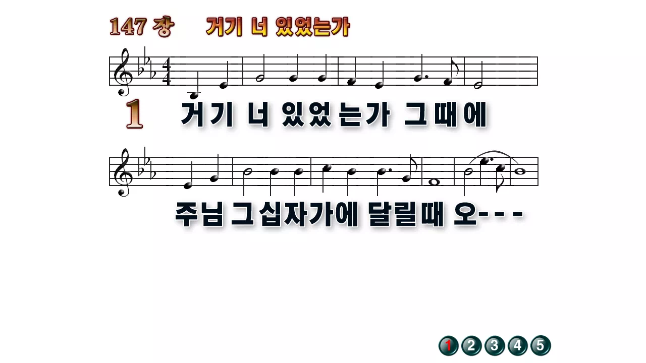 새찬송가 '147장 거기 너 있었는가'의 16:9 와이드버전으로 편집된 배경 없는 새찬송가 PPT악보입니다.