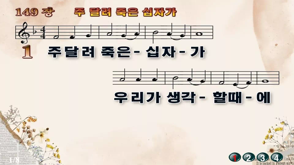 새찬송가 '149장 주 달려 죽은 십자가'의 16:9 와이드버전으로 편집된 새찬송가 PPT악보입니다.