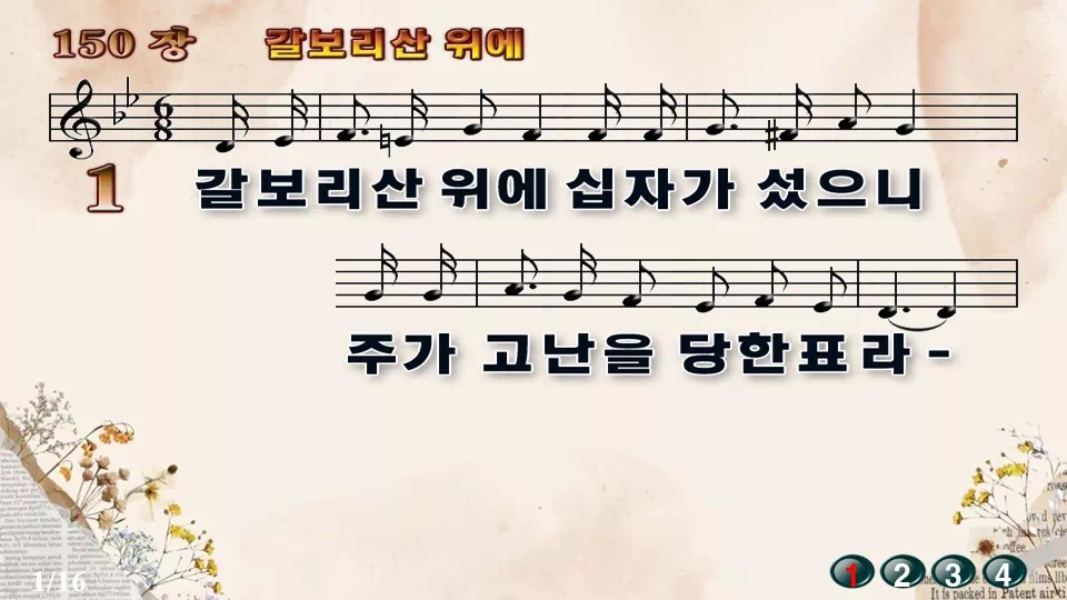 새찬송가 '150장 갈보리산 위에'의 16:9 와이드버전으로 편집된 새찬송가 PPT악보입니다.