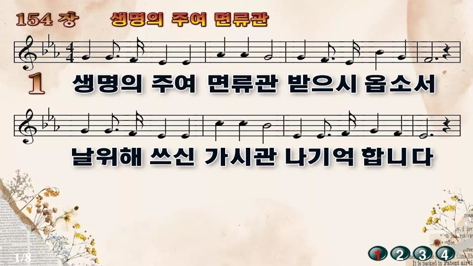 새찬송가 '154장 생명의 주여 면류관'의 16:9 와이드버전으로 편집된 새찬송가 PPT악보입니다.