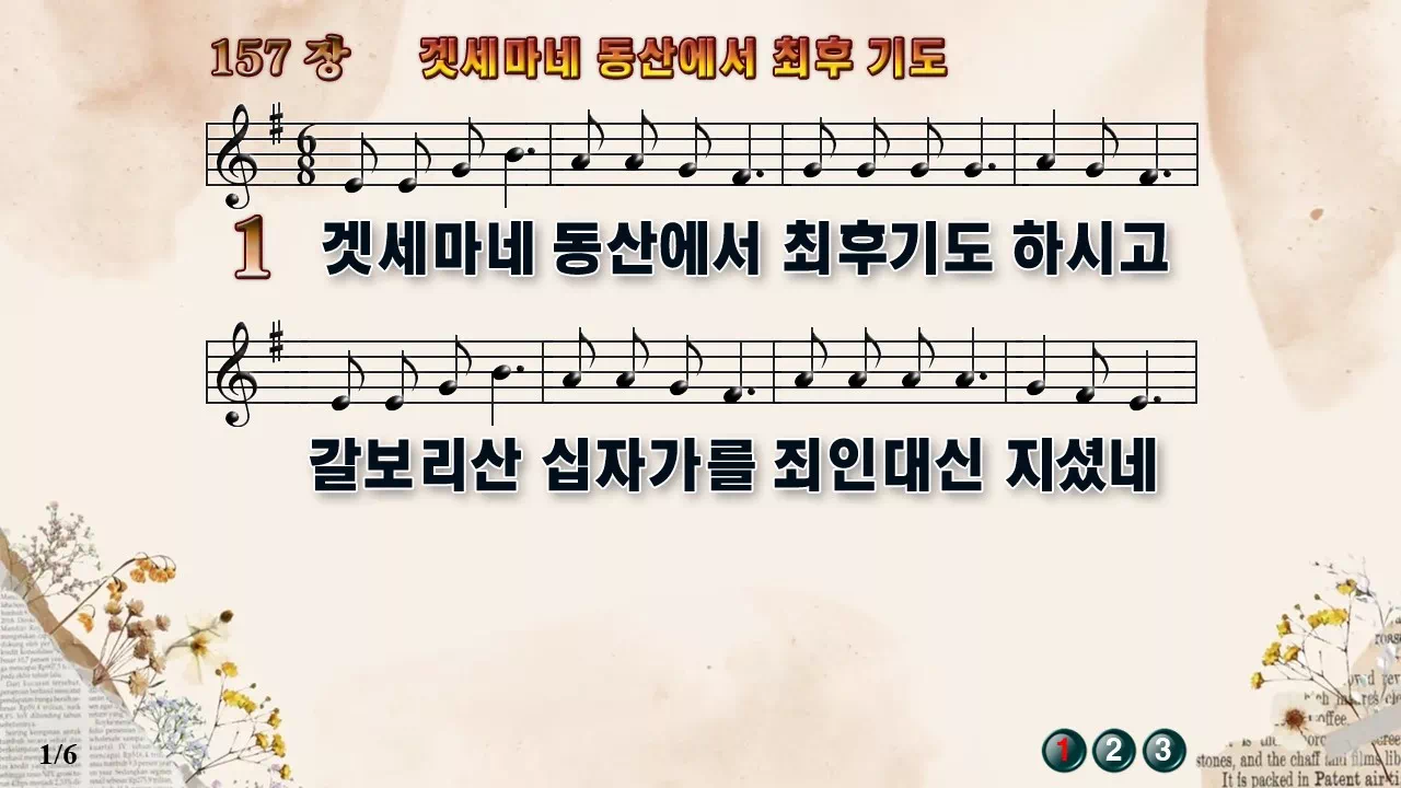 새찬송가 '157장 겟세마네 동산에서 최후 기도'의 16:9 와이드버전으로 편집된 새찬송가 PPT악보입니다.