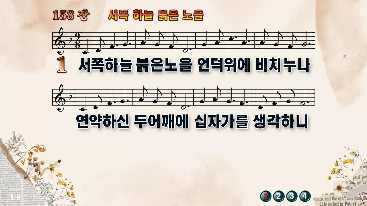 새찬송가 '158장 서쪽 하늘 붉은 노을'의 16:9 와이드버전으로 편집된 새찬송가 PPT악보입니다.