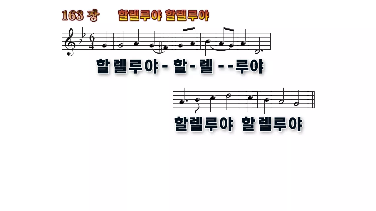 새찬송가 '163장 할렐루야 할렐루야'의 16:9 와이드버전으로 편집된 배경 없는 새찬송가 PPT악보입니다.