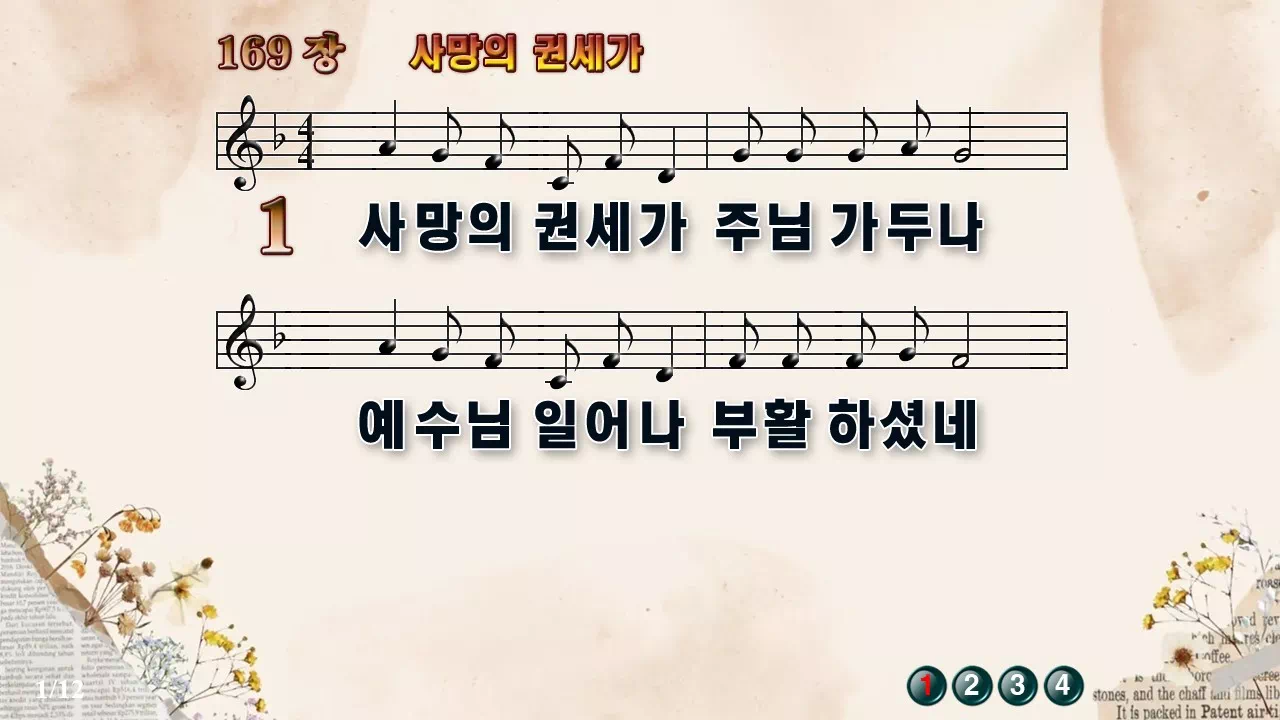 새찬송가 '169장 사망의 권세가'의 16:9 와이드버전으로 편집된 새찬송가 PPT악보입니다.