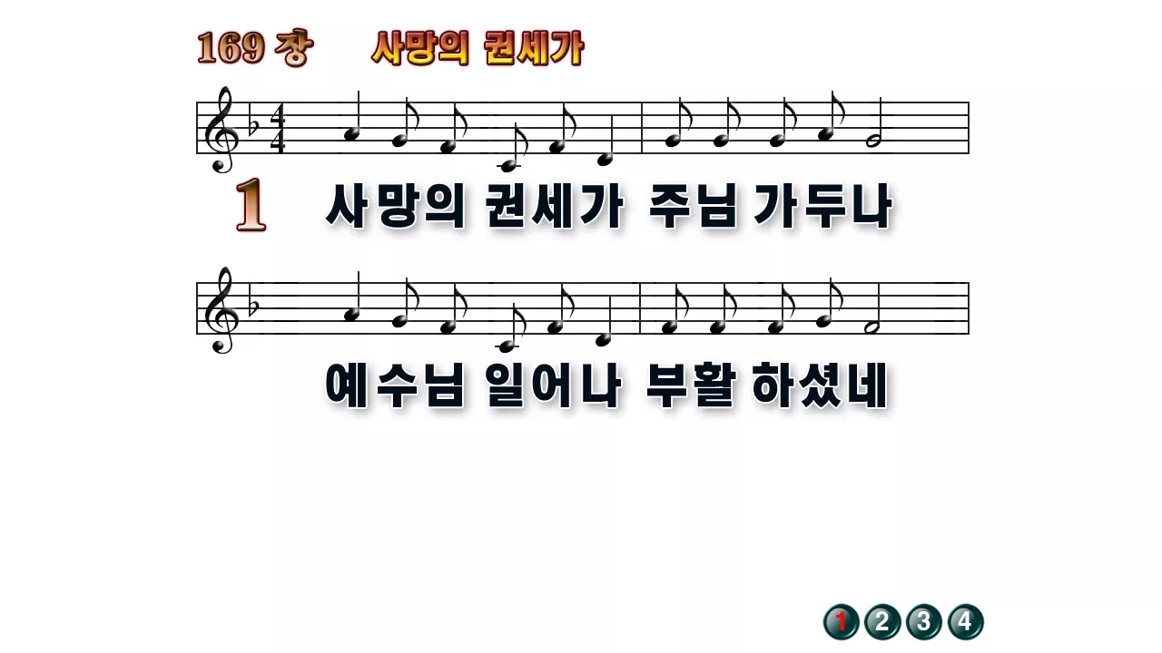 새찬송가 '169장 사망의 권세가'16:9 와이드버전으로 편집된 배경 없는 새찬송가 PPT악보입니다.