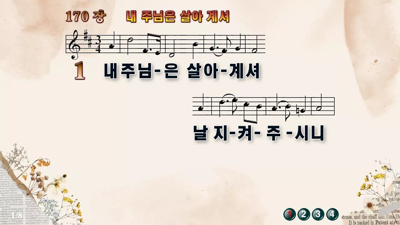새찬송가 '170장 내 주님은 살아계셔'의 16:9 와이드버전으로 편집된 새찬송가 PPT악보입니다.