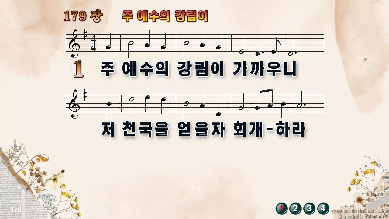 새찬송가 '179장 주 예수의 강림이'의 16:9 와이드버전으로 편집된 새찬송가 PPT악보입니다.