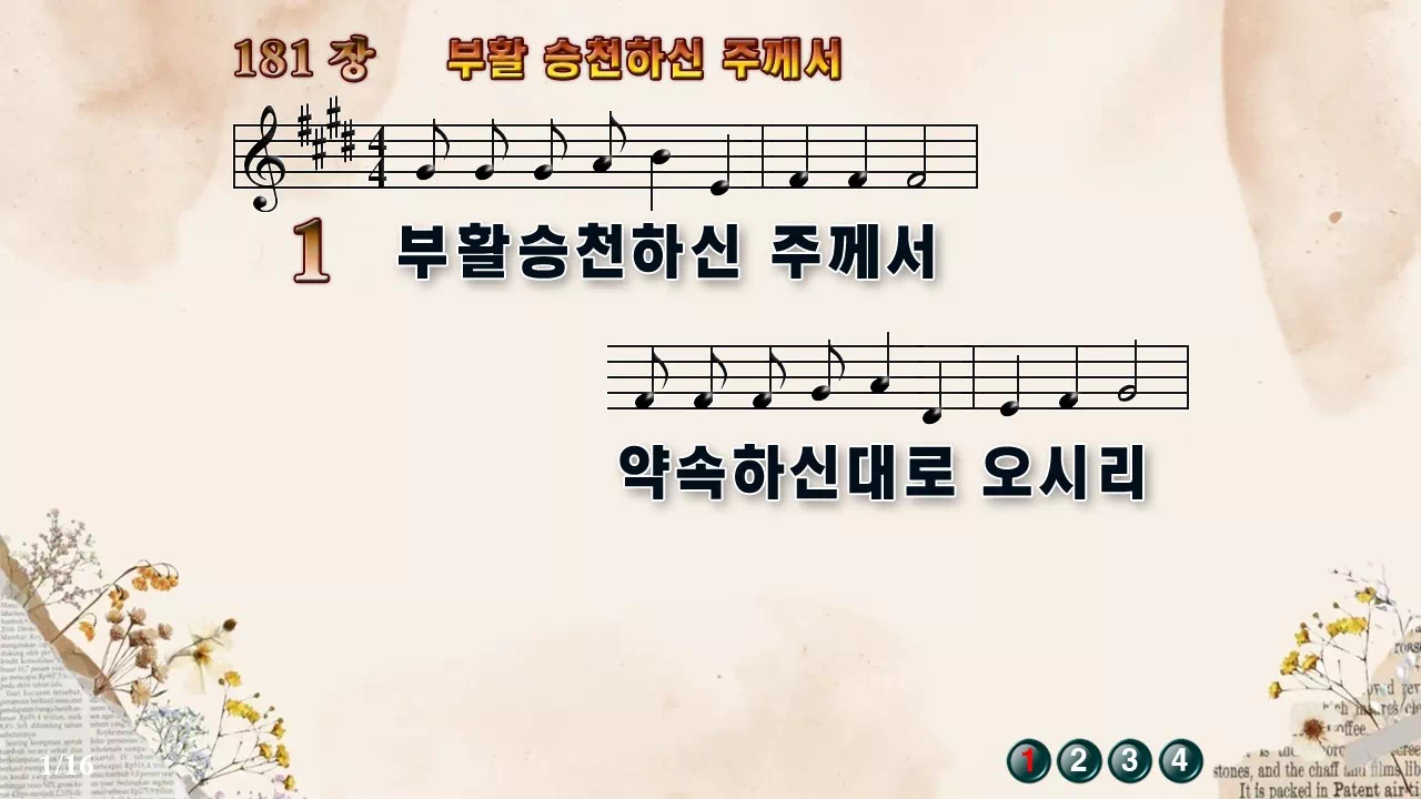 새찬송가 '181장 부활 승천하신 주께서'의 16:9 와이드버전으로 편집된 새찬송가 PPT악보입니다.