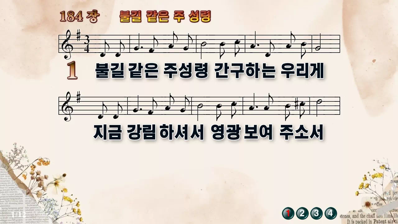 새찬송가 '184장 불길 같은 주 성령'의 16:9 와이드버전으로 편집된 새찬송가 PPT악보입니다.