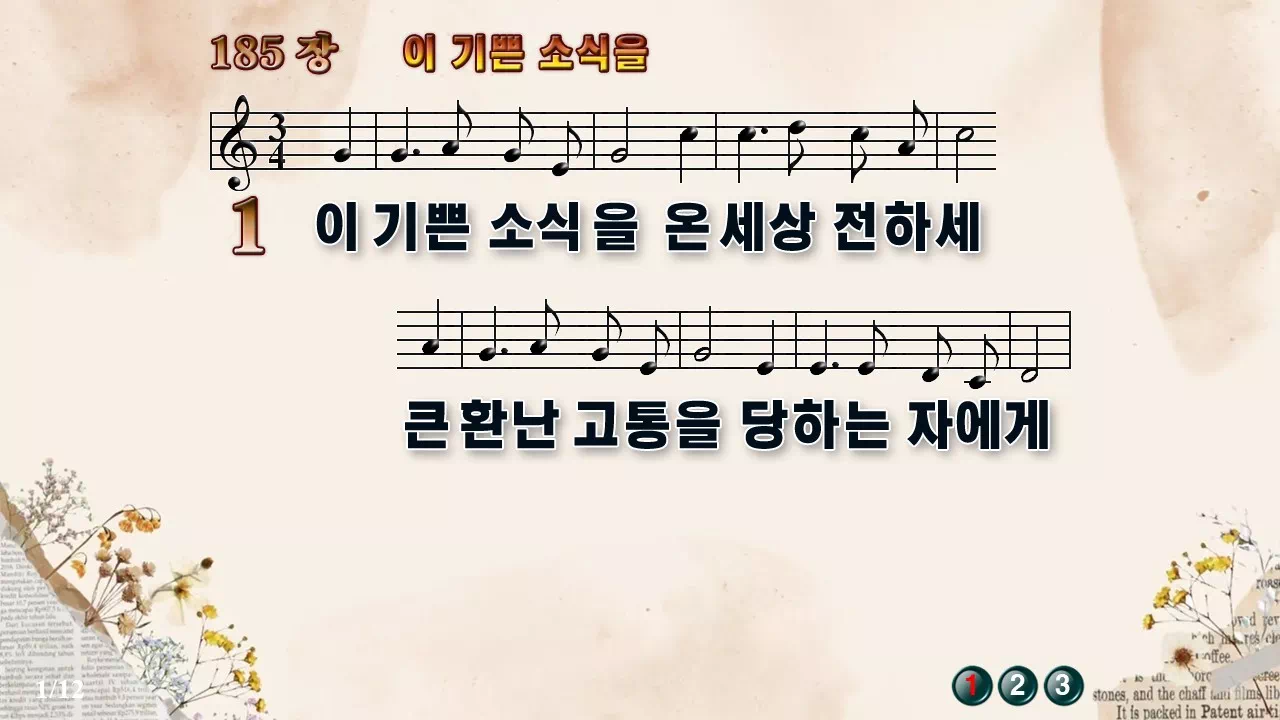 새찬송가 '185장 이 기쁜 소식을'의 16:9 와이드버전으로 편집된 새찬송가 PPT악보입니다.