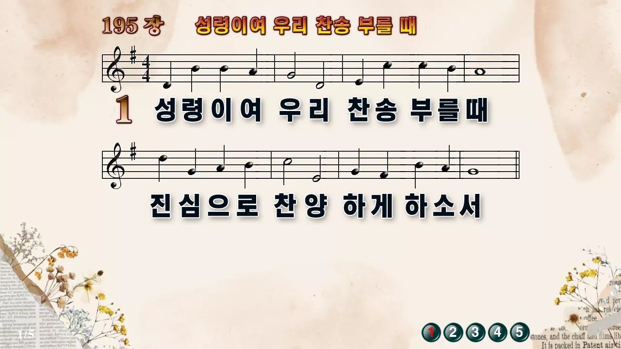 🎼새찬송가 '195장 성령이여 우리 찬송 부를 때' 고화질 악보 다운로드