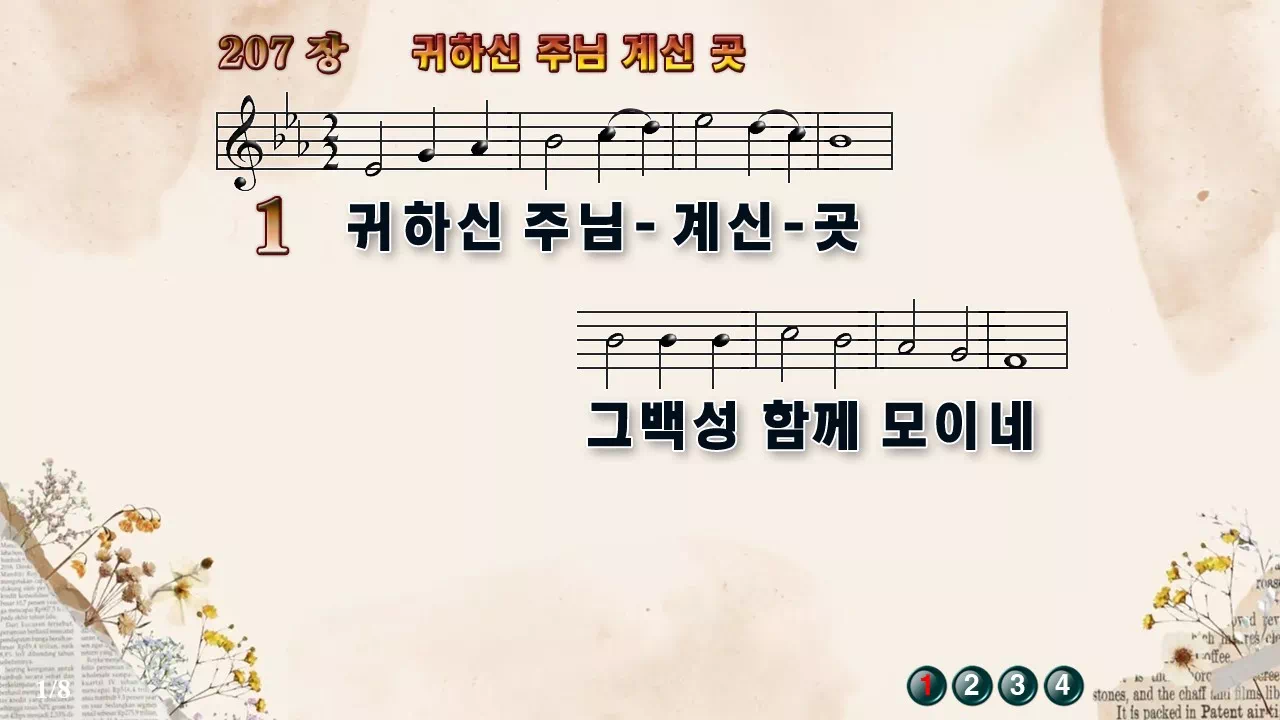 새찬송가 '207장 귀하신 주님 계신 곳'의 16:9 와이드버전으로 편집된 새찬송가 PPT악보입니다.