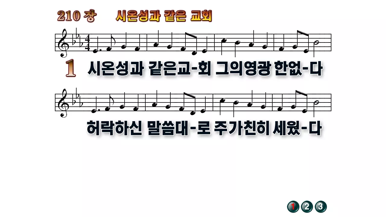 새찬송가 PPT: 210장 시온성과 같은 교회(16:9/가사/PPT악보/다운로드/배경X)