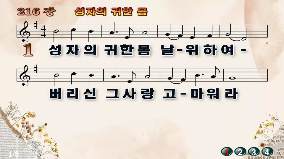 🎼새찬송가 '216장 성자의 귀한 몸' 고화질 악보 다운로드
