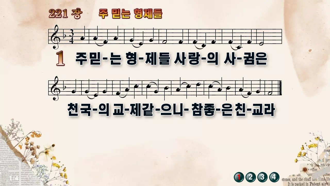 새찬송가 '221장 주 믿는 형제들'의 16:9 와이드버전으로 편집된 새찬송가 PPT악보입니다.