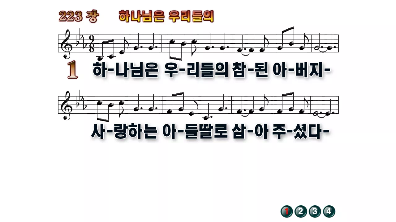 새찬송가 PPT: 223장 하나님은 우리들의(16:9/가사/PPT악보/다운로드/배경X)