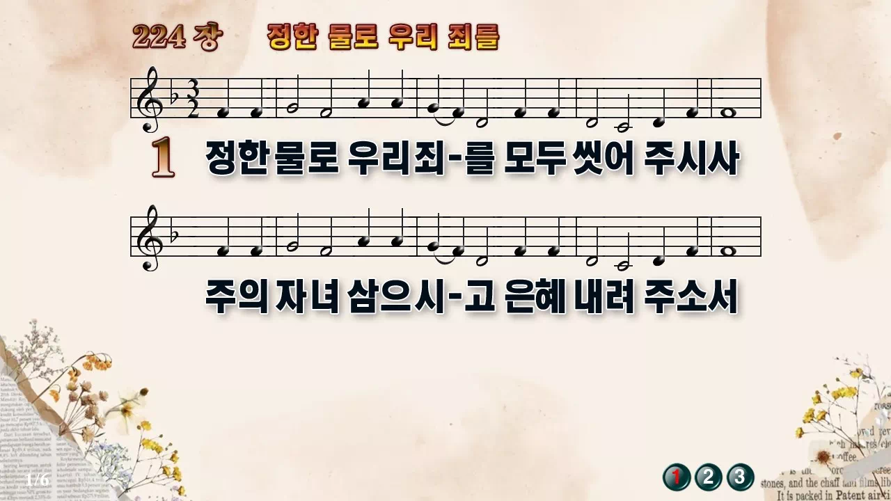 새찬송가 PPT: 224장 정한 물로 우리 죄를(16:9/가사/PPT악보/다운로드/배경O)