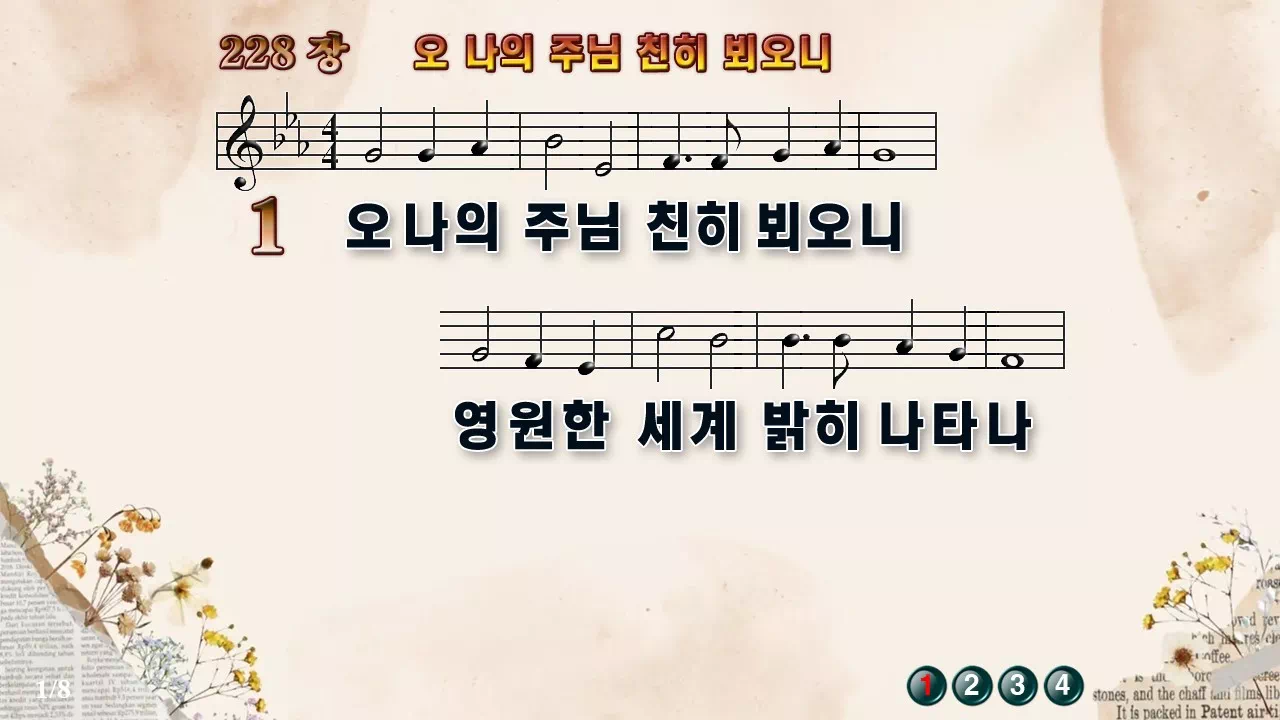 새찬송가 '228장 오 나의 주님 친히 뵈오니'의 16:9 와이드버전으로 편집된 새찬송가 PPT악보입니다.
