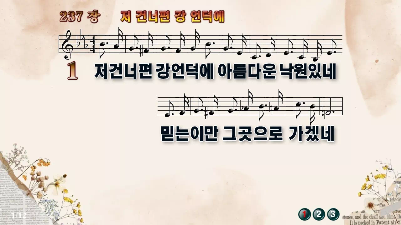 새찬송가 '237장 저 건너편 강 언덕에'의 16:9 와이드버전으로 편집된 새찬송가 PPT악보입니다.
