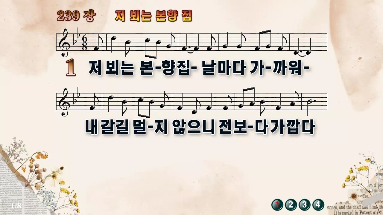 새찬송가 '239장 저 뵈는 본향 집'의 16:9 와이드버전으로 편집된 새찬송가 PPT악보입니다.