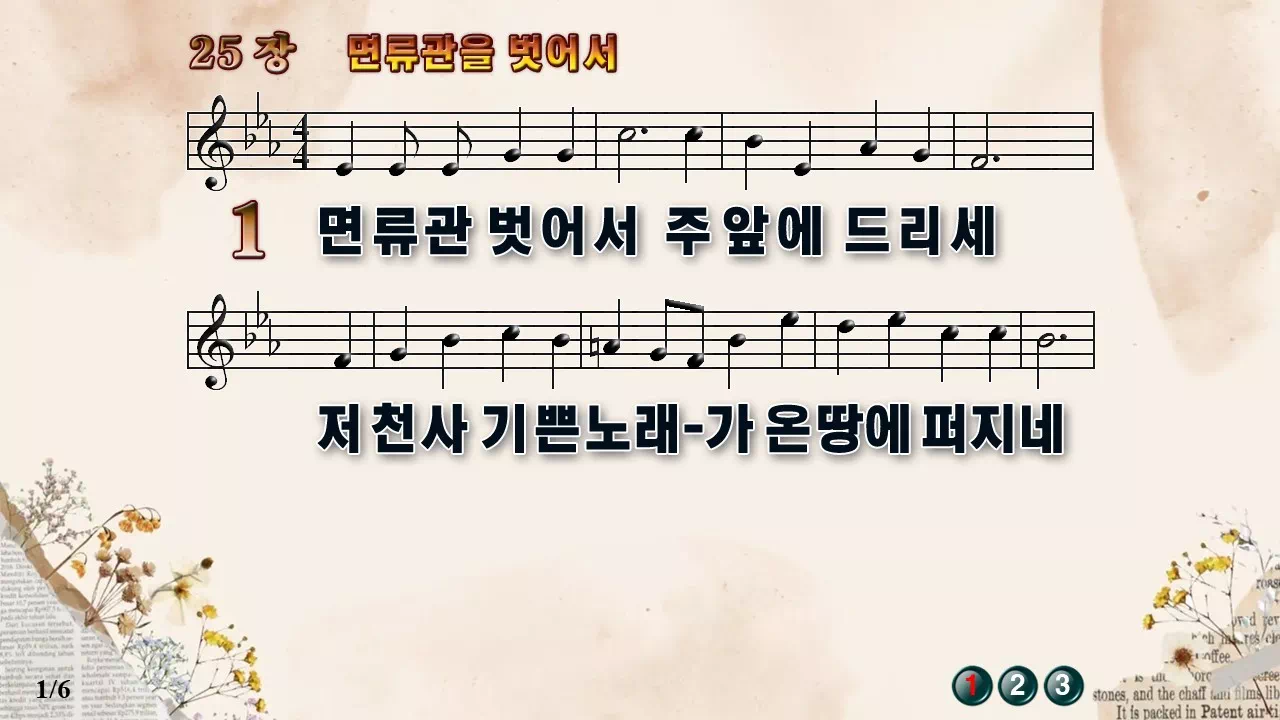 새찬송가 '25장 면류관 벗어서'의 16:9 와이드버전으로 편집된 새찬송가 PPT악보입니다.