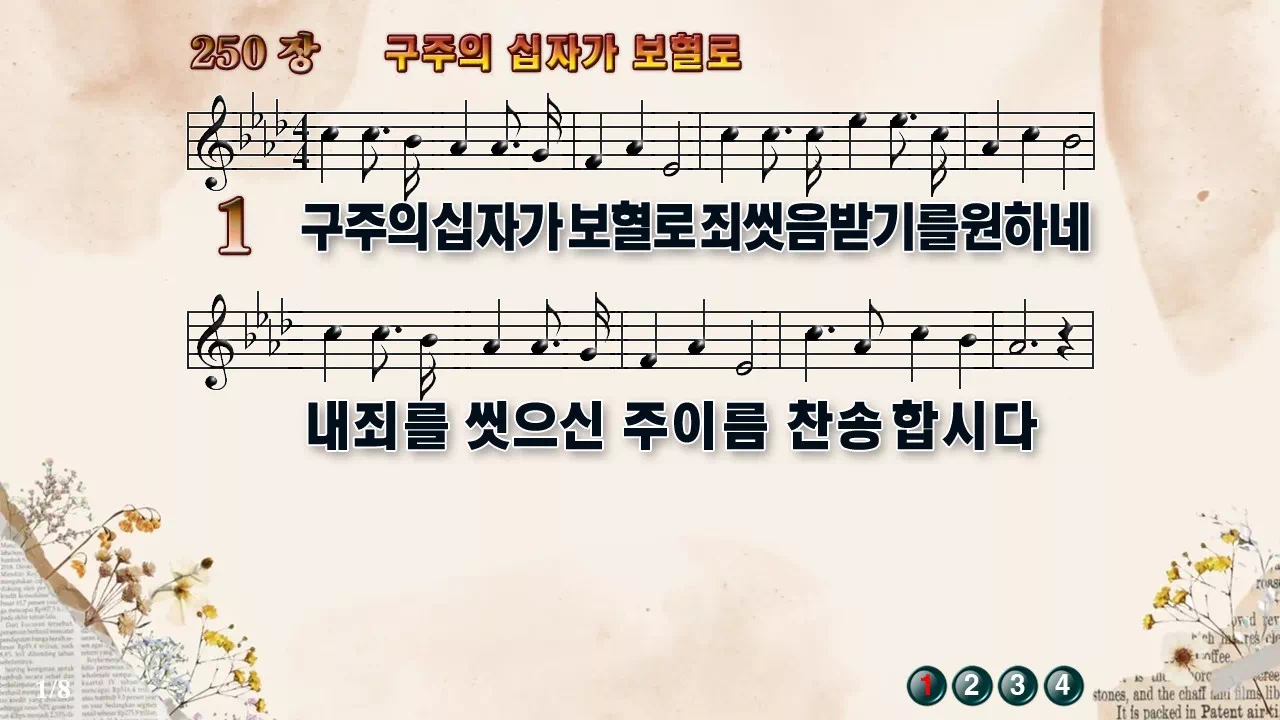 새찬송가 PPT: 250장 구주의 십자가 보혈로(16:9/가사/PPT악보/다운로드/배경O)