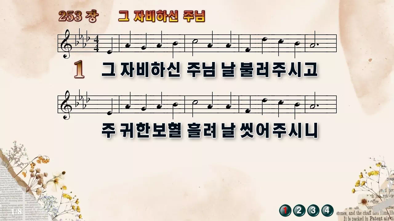 새찬송가 '253장 그 자비하신 주님'16:9 와이드버전으로 편집된 새찬송가 PPT악보입니다.