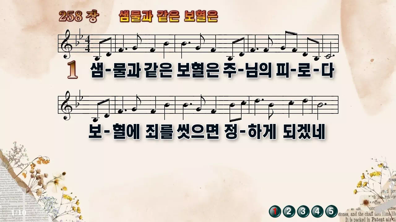 새찬송가 '258장 샘물과 같은 보혈은'16:9 와이드버전으로 편집된 새찬송가 PPT악보입니다.