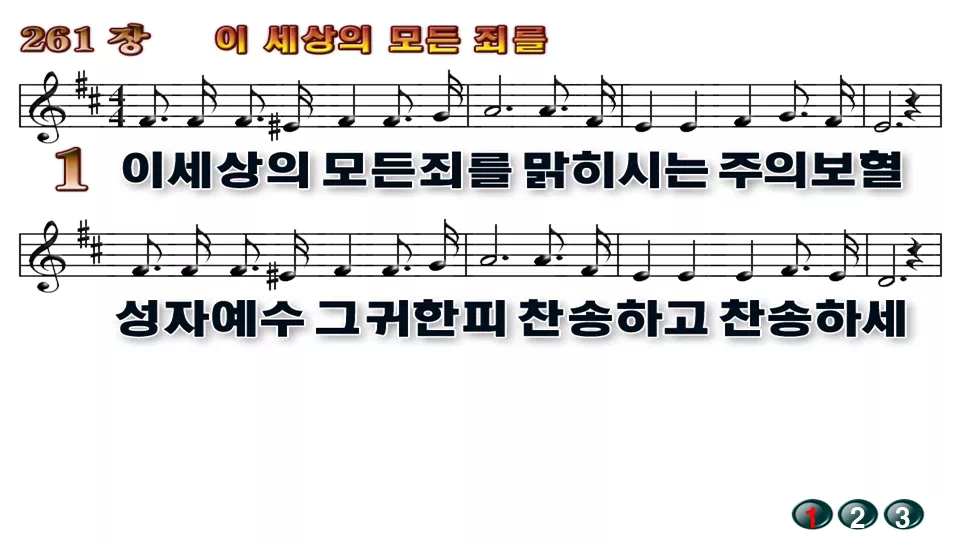 새찬송가 PPT: 261장 이 세상의 모든 죄를(16:9/가사/PPT악보/다운로드/배경X)