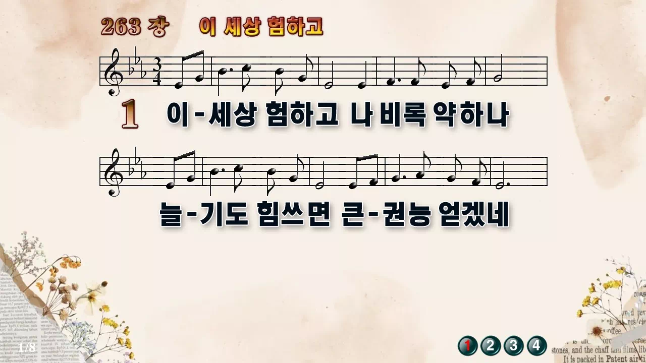 새찬송가 '263장 이 세상 험하고'16:9 와이드버전으로 편집된 새찬송가 PPT악보입니다.