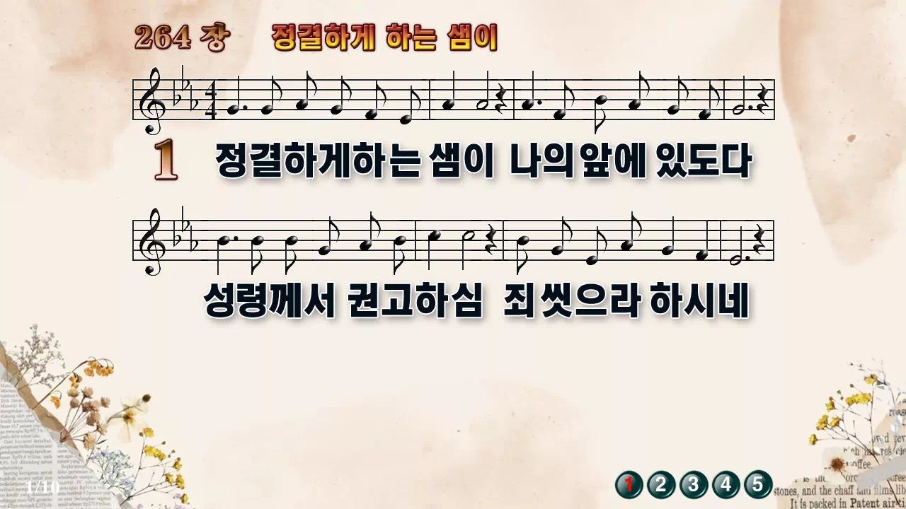 🎼새찬송가 '264장 정결하게 하는 샘이' 고화질 악보 다운로드