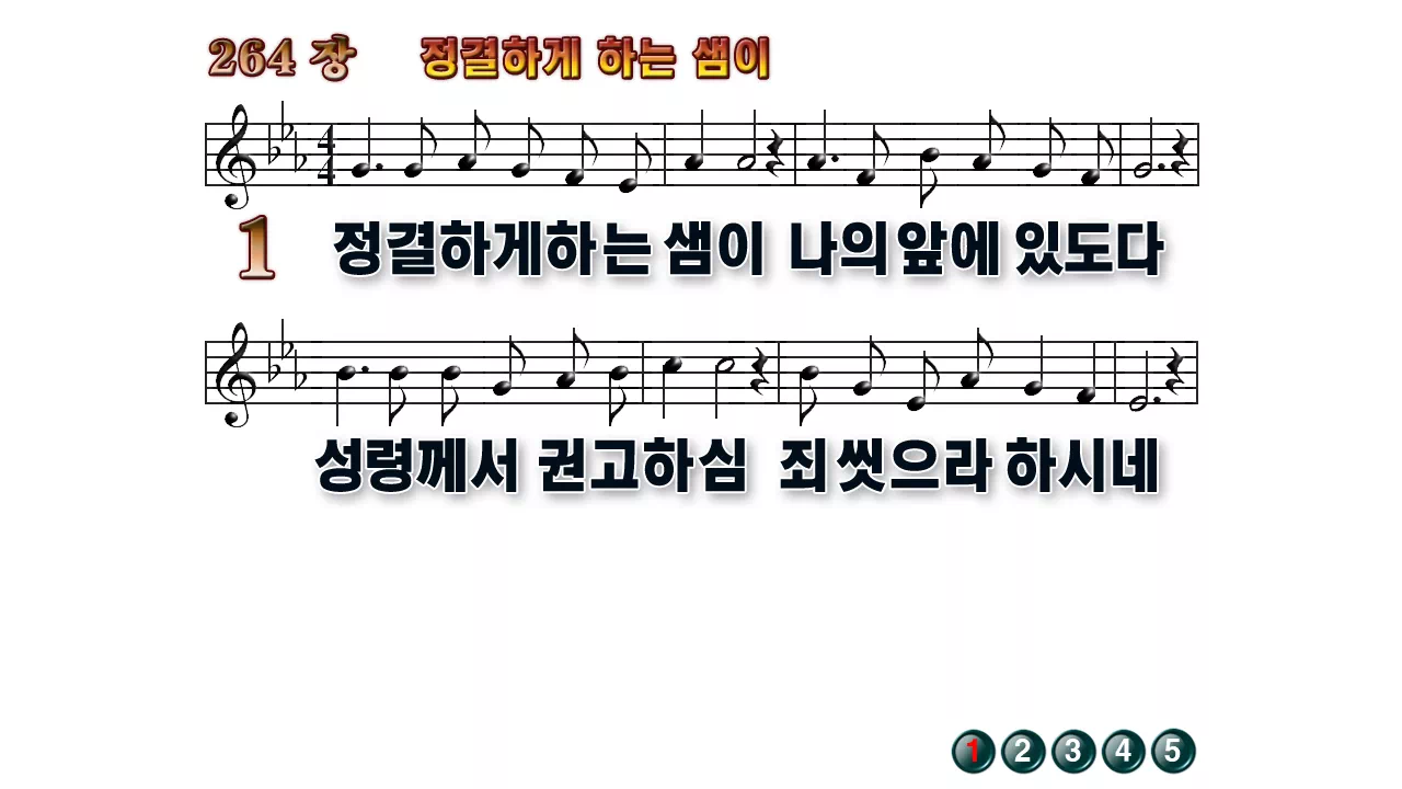 새찬송가 PPT: 264장 정결하게 하는 샘이(16:9/가사/PPT악보/다운로드/배경X)